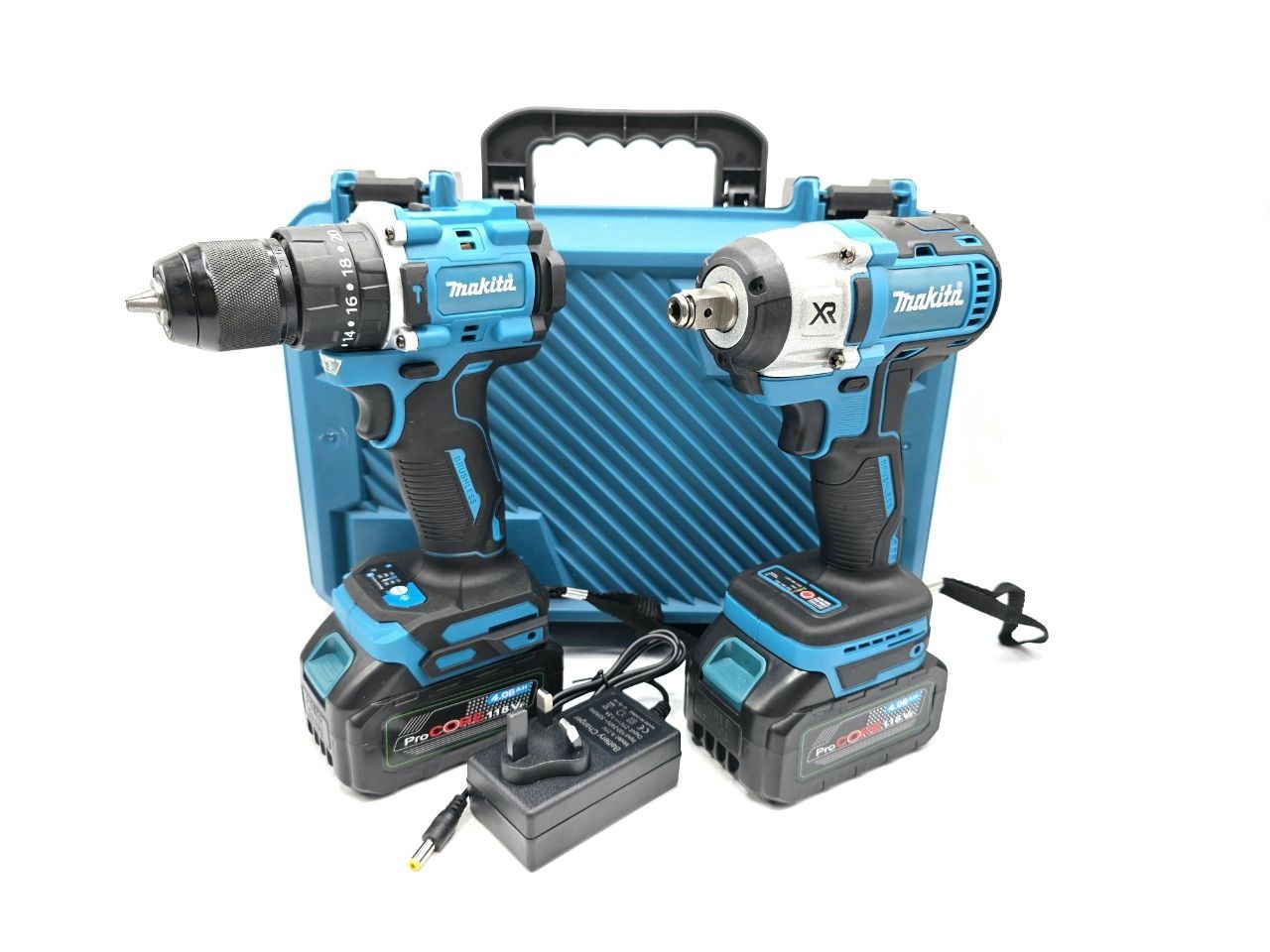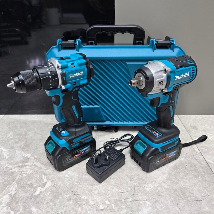 ⭐ مجموعه دو عددی دریل شارژی چکشی و بکس شارژی براشلس طرح ماکیتا