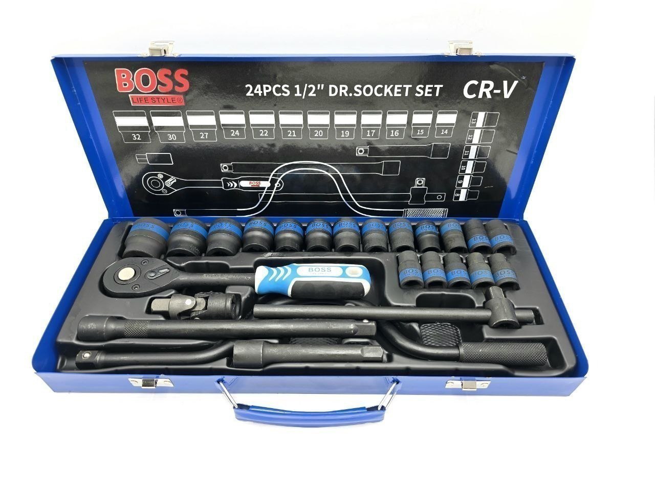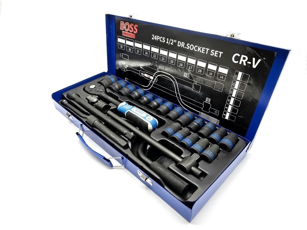 ✔ دارای ۱۸ عدد بکس( سایزهای: ۸، ۱۰، ۱۱، ۱۲، ۱۳، ۱۴، ۱۵، ۱۶، ۱۷، ۱۸، ۱۹، ۲۰، ۲۱، ۲۲، ۲۴، ۲۷، ۳۰ و ۳۲)
